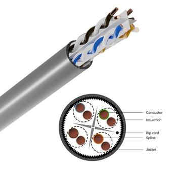 Cable LAN de 24AWG, 0,51mm, CAT5e, BC/CCA, PE, escudo aislado, chaqueta LSZH de PVC, 305m, 1000 pies de longitud, Cable de red