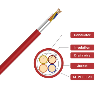 Кабель пожарной сигнализации FPLR 4C 18AWG UL1424 перечисленный экранированный сплошной медный кабель охранной сигнализации с низкими потерями