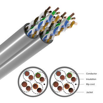 สายเคเบิลอีเทอร์เน็ต DOUBLE-UTP CAT5e สายแจ็กเก็ตพีวีซีหุ้มฉนวนตัวนำทองแดงสาย24AWG ยาว100ม. 305ม.